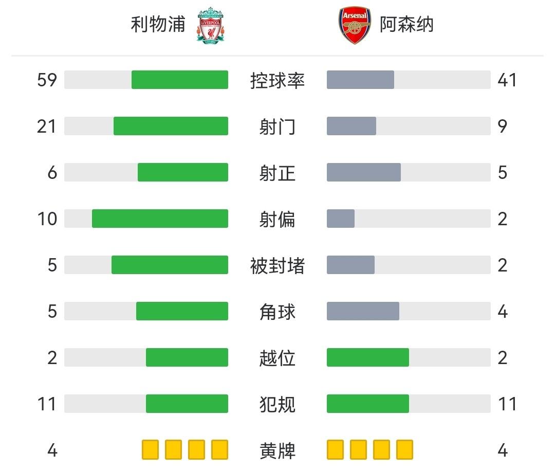 最终全场比赛结束,利物浦2-2战平阿森纳。