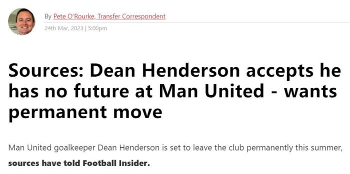 英媒「Football Insider」报道称,亨德森对自己过去几个赛季在曼联的待遇感到不满,现在他也意识到,滕哈格未来也不会重用他,而打算引进一名新门将来接班32岁的德赫亚。与此同时,英格兰国门绝不甘心担任替补,他希望加盟一支能够让他担任主力的球队,以便争取重返英格兰队。