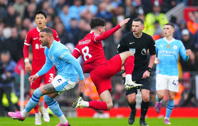 凭借出色的整体,利物浦依然与曼城踢出了接近五五开的场面,攻势则一度压过曼城,不过绝对机会方面,曼城占优。全场比赛,曼城控球率47%,与利物浦的射门对比为10-19,射正对比为6-6,最终变成1-1平局。曼城此役运气差了一些,无缘3-1登顶,在比赛第23分钟,德布劳内助攻斯通斯破门;比赛第73分钟,福登击中横梁;比赛第88分钟,多库小角度劲射击中立柱,曼城2次中框无缘破门,无缘3球击败利物浦;利物浦由麦卡利斯特在比赛第50分钟点射破门。