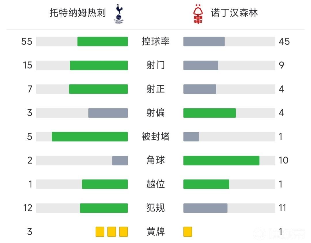 最终,热刺3-1击败诺丁汉森林。