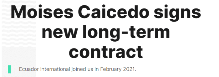 24直播网讯03月04日,布莱顿官方宣布,球队与厄瓜多尔后腰莫伊塞斯-凯塞多续约至2027年。