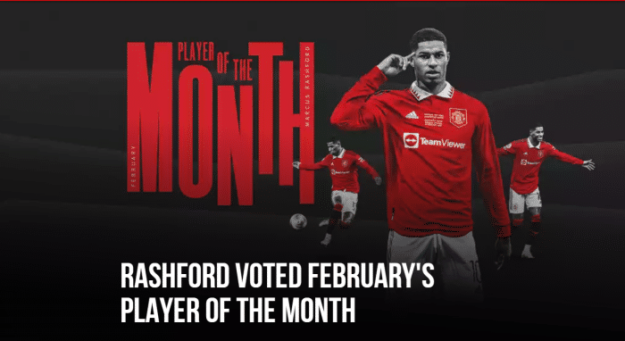 足球俱乐部官方宣布,拉什福德当选2月份月度最佳球员,这是他连续第三次获得月度最佳球员奖。