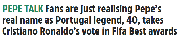 24直播网讯03月01日据英国媒体《太阳报》报道,C罗没有参加国际足联年度最佳评选的投票,是因为佩佩被选为葡萄牙新队长。