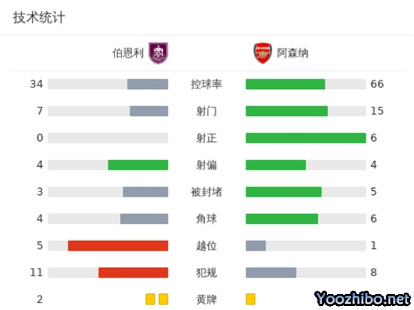 全场比赛结束,最终阿森纳5-0伯恩利。