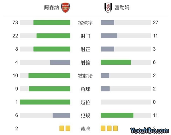 全场比赛结束,阿森纳2-1富勒姆。