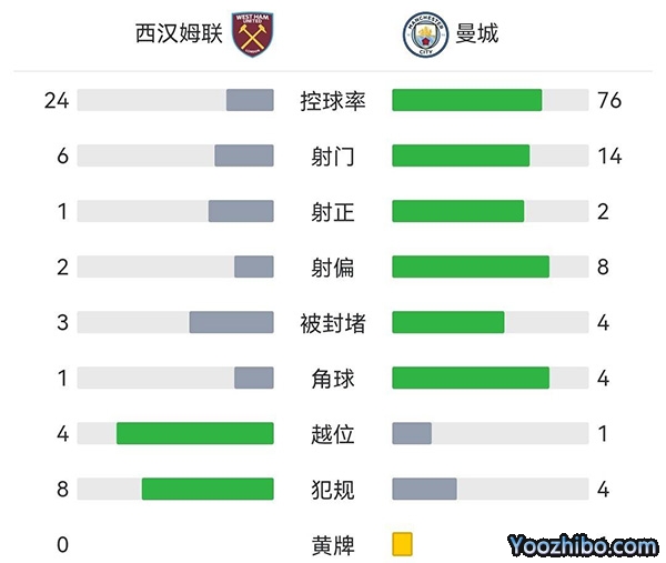 全场比赛结束,最终曼城客场2-0击败西汉姆,收获新赛季开门红。