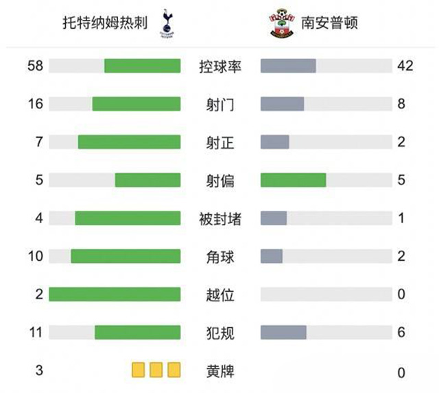 全场比赛结束,热刺4-1南安普顿。