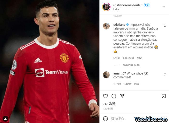 24直播网07月29日讯 今天,C罗在Instagram的一个球迷号下方评论,他表示媒体一天不谈论自己,就赚不到钱。
