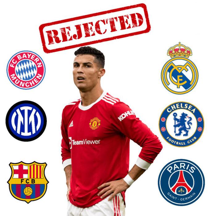 在此之前,拜仁、切尔西、大巴黎等欧洲豪门,也因为哲学不同、主帅反对和队内已无空间等理由,先后拒绝引进C罗。C罗的老东家皇马也没打算欢迎他回归,《马卡报》称,虽然在2009年到2018年期间,C罗曾为银河战舰贡献438场450球的惊人纪录,但他没有重返伯纳乌的可能性。