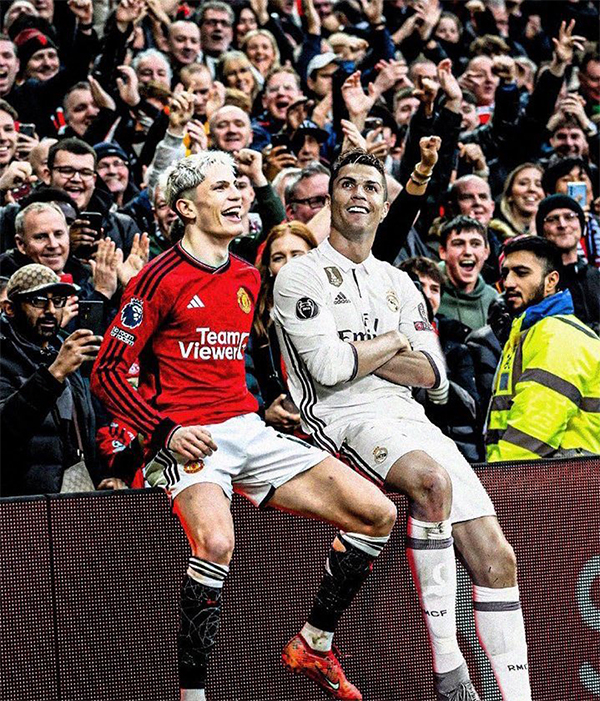加纳乔模仿C罗庆祝时,霍伊伦德和科比·梅诺也加入了他的行列,人们认为他们代表了曼联的未来。对此加纳乔评价道:「科比(梅诺)是未来之星,与他并肩作战感觉很好,我们曾在18岁和21岁以下青年队一起配合,我们一起长大,我很高兴。只要你有能力比赛,就能参赛,不管是18岁还是19岁,我为他和球队感到高兴。」