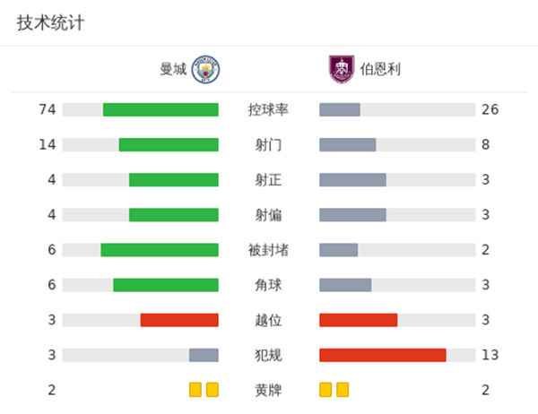 曼城3-1伯恩利 小蜘蛛生日夜双响哈兰德复出