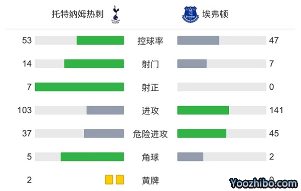 第56分钟,多赫蒂长传到后点,凯恩小角度抽射打入球门死角,热刺5-0埃弗顿。
