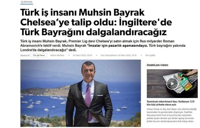 来自土耳其媒体Yeni Safak的报道,土耳其商人穆赫辛-拜拉克(Muhsin Bayrak)在接受采访时亲口宣布,他即将正式买下英超切尔西俱乐部,他与阿布拉莫维奇的谈判已经结束。