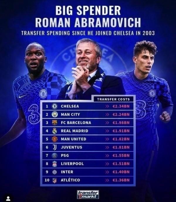 24直播网3月03日讯 凌晨,截止到2021年夏窗关闭后的数据可以看到,在阿布2003年成为蓝军老板之后,他一共在转会市场上投入23.4亿欧元,高居全球第一,连曼城、大巴黎等其他土豪队都自叹不如。而如今随着阿布的离开,蓝军未来的管理者能否像阿布如此热爱这家俱乐部,愿意为球队付出,确实是个不小的疑问。