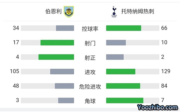 全场比赛结束,热刺做客0-1不敌伯恩利,球队近五场英超联赛仅取得一场胜利。