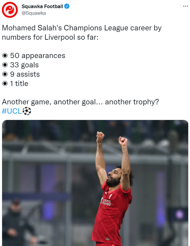 24直播网02月17日讯 今天凌晨,利物浦在欧冠联赛中客场2-0击败国米,萨拉赫迎来个人红军生涯的欧冠50场里程碑。