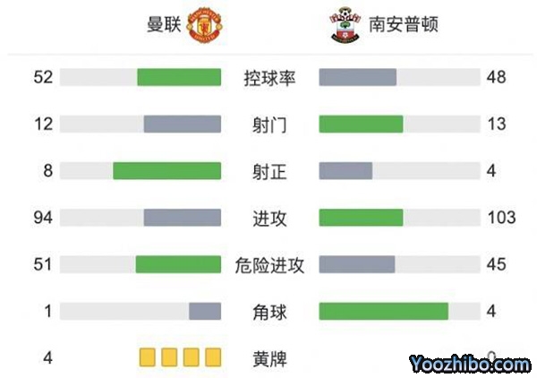 全场比赛结束,曼联1-1战平南安普顿。