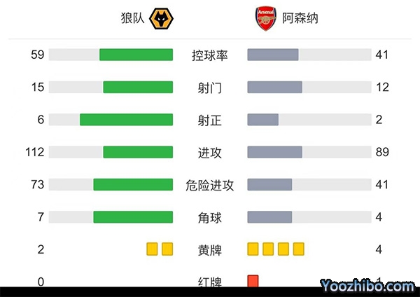 全场比赛结束,阿森纳客场1-0战胜狼队。