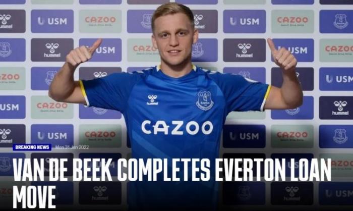 24直播网02月01日讯 曼联官方消息,荷兰中场范德贝克租借加盟埃弗顿,租期至本赛季结束。