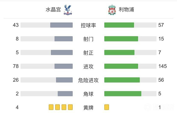 补时6分钟过后全场比赛结束,最终利物浦3-1水晶宫。