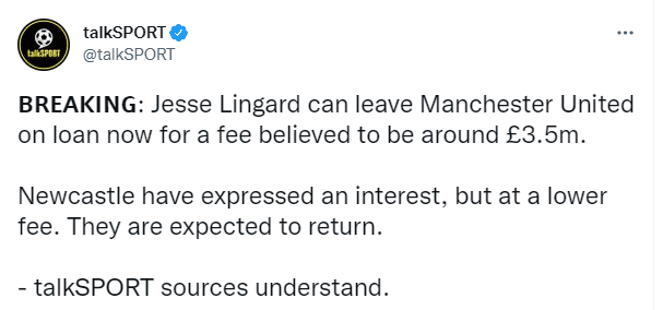 24直播网01月21日讯 林加德的合同今夏到期,曼联愿意在冬窗以350万镑的租借费放人。纽卡斯尔表示了对他的兴趣,但出价太低,他们将提高报价。