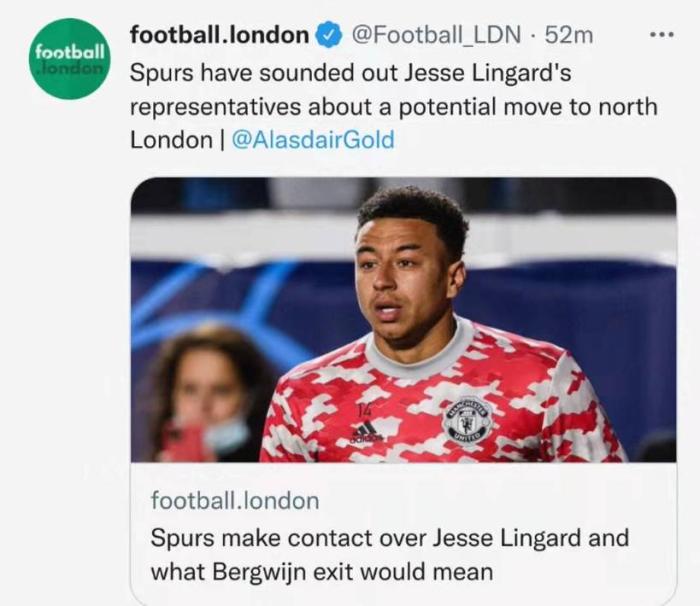 24直播网01月12日讯 ,据Football.London的最新报道,热刺已经和林加德方面就转会的可能性进行了接触。