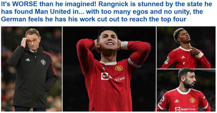 英国《每日邮报》称,朗尼克来到曼联后发现,球队的问题已经超出他的想象,现状令他震惊(stunned),而且球星们对他这位临时主帅根本不信服。朗尼克不得不在战术上进行妥协,但这也将导致红魔实现英超进入前四的希望大大降低,朗尼克已经没有信心实现目标。