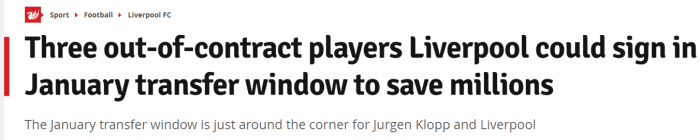 24直播网12月30日讯 ,英国媒体《利物浦回声报》列出了3位利物浦可以在冬窗关注的3位球员。这三人的合同都将在明年夏天到期,利物浦可以在1月与他们接触并预签合同。
