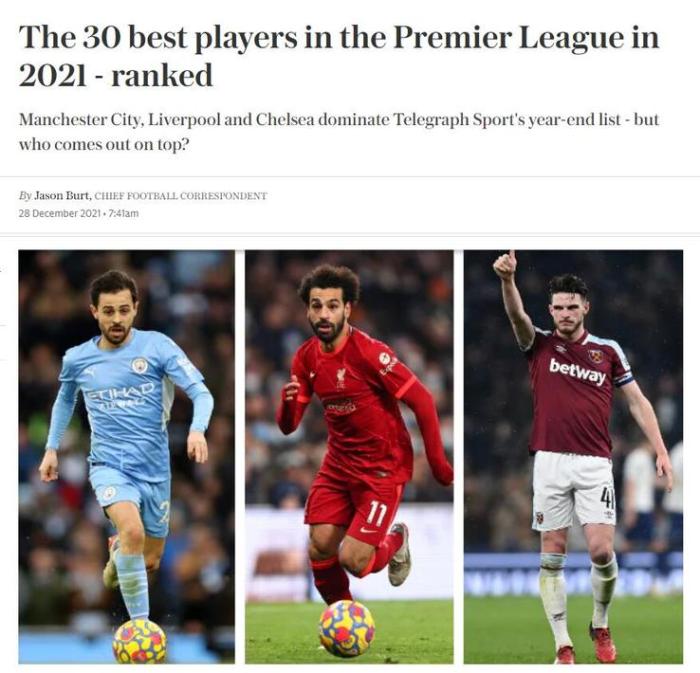 24直播网12月29日讯 近日,《每日电讯报》评选了2021年度英超30大球星。