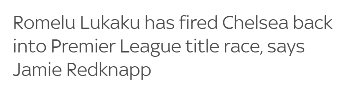 “切尔西应该出现在冠军争夺战中,有卢卡库和坎特的切尔西完全是不同的球队,切尔西能够让曼城利物浦感到紧张与压力。”