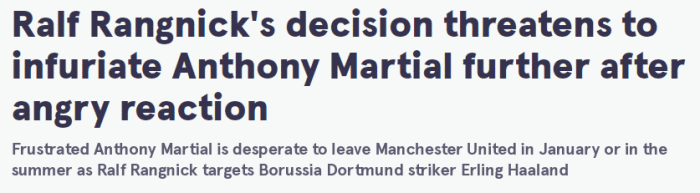 《镜报》称,这次马夏尔再度被告知可能让出9号让他非常不满,同时他也想要更多出场时间,因此他希望在冬窗离队。