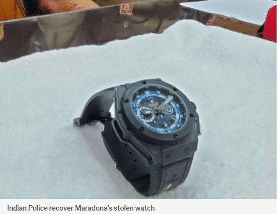 盗窃犯叫侯赛因,今年37岁,他曾在和马拉多纳相关的一家公司担任安保,盗窃手表后逃到印度的阿萨姆市。