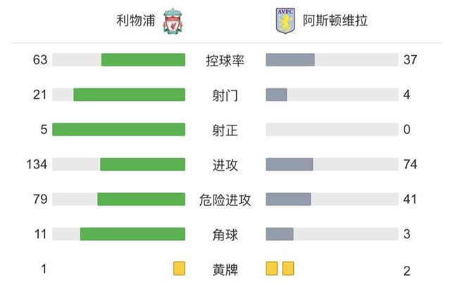 利物浦1-0维拉 萨拉赫造点+主罚命中
