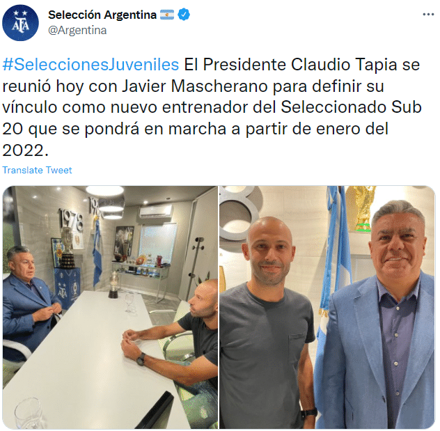 24直播网12月10日讯 据阿根廷足协官方消息,马斯切拉诺将从2022年1月开始担任阿根廷U20国家队主帅。