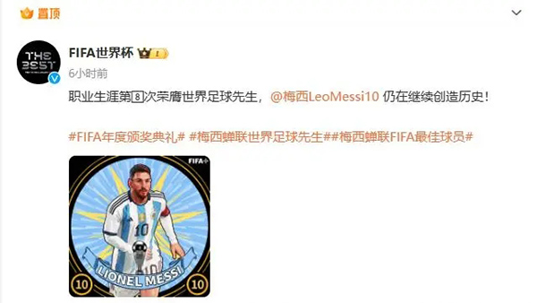24直播网01月16日讯 ,2023年fifa颁奖典礼举行,梅西击败哈兰德和姆巴佩,职业生涯第8次荣膺世界足球先生。