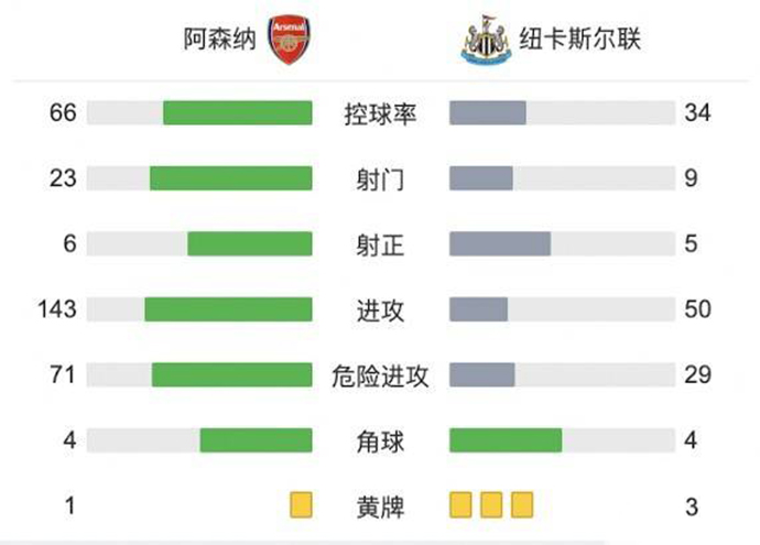 阿森纳2-0纽卡斯尔 萨卡破门马丁内利建功