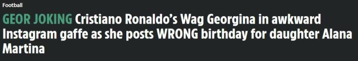 24直播网11月20日讯 据英国媒体《太阳报》报道,C罗的女友乔治娜在个人社交媒体发布了一段为女儿庆生的视频,却把出生日期写错了。