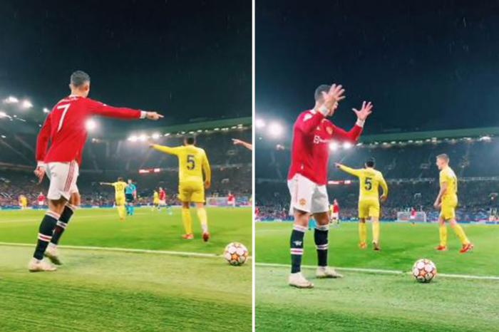 24直播网10月10日讯 曼联官方最近发布了一段视频,其中记录了克里斯蒂亚诺·罗纳尔多在欧冠对比利亚雷亚尔之战的一个细节。C罗在对方禁区与帕雷霍拼抢,皮球出了底线,C罗双手拍地表示遗憾,随后主裁指向球门球,葡萄牙巨星感到不可思议,高举双手表示抗议。最终,永不放弃的C罗在比赛最后时刻压哨绝杀,拿下了胜利。