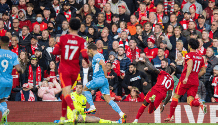 上半场的曼城牢牢掌握着比赛的主动权,压制着利物浦,不过可惜没有取得进球。下半场萨拉赫精彩过人和传球,助攻马内破门得分。福登小角度破门得分,连续两个赛季来到安菲尔德球场都取得进球。萨拉赫展现个人能力,连续过了2人之后射门成功。4分钟之后,德布劳内弧线球射门再度扳平比分,这样两队战成2-2平,本轮各拿一分。