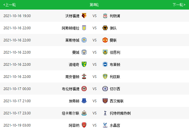 英超第8轮将会在10月16日和17日进行,期间有国家队的比赛任务,也希望之后各队可以好运,争取尽快取得更多积分,实现赛季目标。