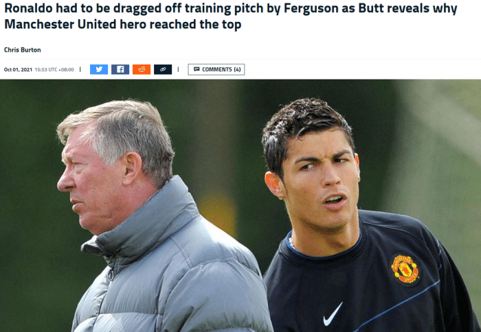 “下午两三点,你总会听到弗格森爵士在训练场对着C罗大喊:‘够了,快回家,过两天还有比赛!’”