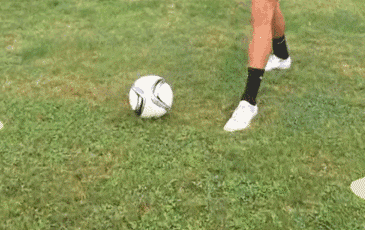 2、传球时,以合适的方式摆腿,同时绷直传球脚脚面并调整髋关节改变腿的姿势,使脚面向内侧略微翻转,从而让脚更易插入到球的底部,使触球位置充分接触到球的偏下位置。