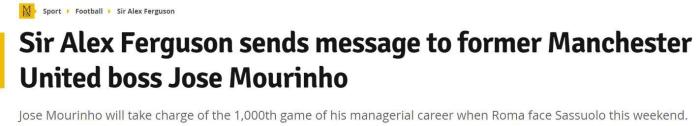 弗格森说:“执教比赛达到1000场,对于穆里尼奥和他的家人来说,无疑是值得自豪的一件事。作为主教练,能取得这样的里程碑时刻,绝对的是杰出的。”