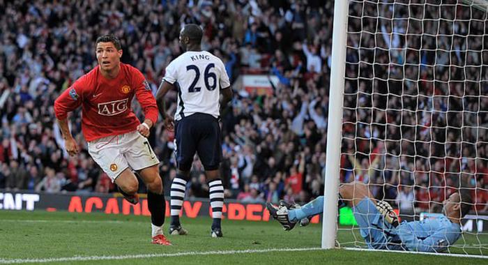 曼联球迷会记得C罗在2009年转会之前,在老特拉福德对阵热刺的比赛中的表现。当时曼联以0-2落后,但第57分钟开始狂入5球实现逆转。