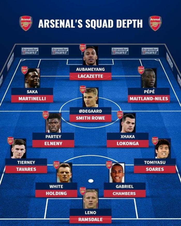 24直播网9月06日讯 德国转会市场盘点了阿森纳的阵容厚度,枪手可以排出两套实力强劲的阵容。