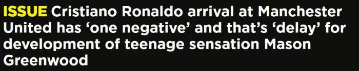 “19岁的格林伍德需要稳定的出场时间来成长,但是C罗的回归会使他的出场时间减少,这是签回C罗的唯一弊端。”