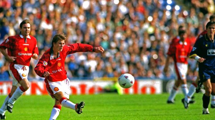 24直播网讯 曼联「万人迷」大卫·贝克汉姆早在1995年4月已经完成英超首秀,同一个赛季也在足总杯半决赛攻入制胜入球,并在决赛助攻坎通纳绝杀利物浦夺冠。但要说他在曼联真正成名的时刻,非1996年8月17日英超揭幕战中的中场吊射莫属。