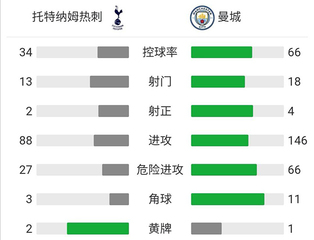 第89分钟,格拉利什铲倒小卢卡斯染黄,双方有些冲突。全场比赛结束,热刺主场1-0击败曼城。