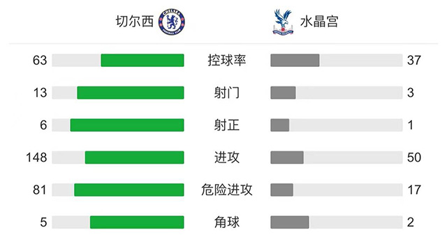 第57分钟,查洛巴大禁区前沿右侧得球一记百步穿杨洞穿球门,切尔西3-0水晶宫。