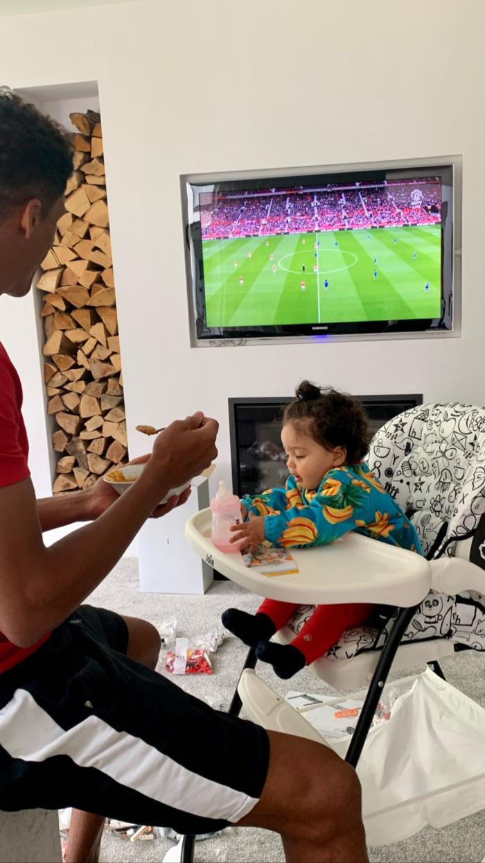 在曼联的热身赛期间,瓦拉内也没有闲着,他一直密切关注自己的未来新队友。法国铁卫在Instagram上发布了一张照片,他一边给自己的小女儿喂奶、喂饭,一边在电视上观看曼联与埃弗顿的比赛直播。